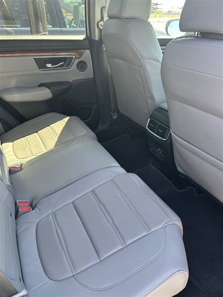 The 2017 Honda CR-V Touring pairs a 1.5L turbocharged I4 (190 hp, 179 lb-ft) with a smooth continuously variable transmission and available Real Time AWD. Factory standard equipment on the Touring includes the Honda Sensing driver-assist package (Adaptive Cruise Control, Collision Mitigation Braking, Lane Keeping Assist and Road Departure Mitigation), Blind Spot Information with Cross Traffic Monitor and a multi-angle rearview camera. Comfort and convenience features include leather-trimmed heated front seats, power-adjustable driver’s seat, dual-zone automatic climate control, smart entry with push-button start, hands-free power tailgate and 60/40 split rear seats for versatile cargo capacity. Infotainment and connectivity are handled by the factory touchscreen Display Audio with navigation, Bluetooth hands-free/audio streaming and USB inputs, while safety is supported by ABS, Vehicle Stability Assist, traction control, multiple airbags and tire pressure monitoring.