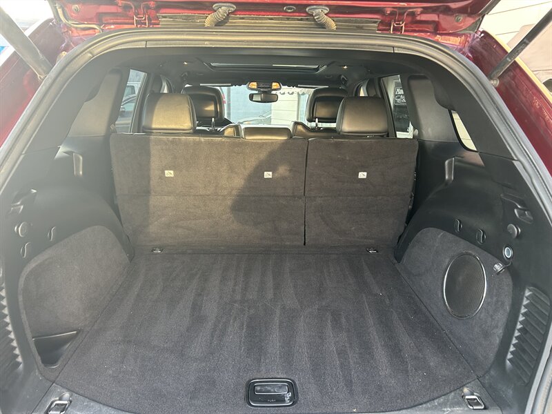 Inside, the Grand Cherokee Overland offers a spacious cabin designed with high-quality materials. Leather-trimmed seats provide both comfort and style, with the front seats featuring heating and ventilation for optimal year-round comfort. The driver's seat is equipped with 8-way power adjustment and memory settings, allowing for personalized comfort.
