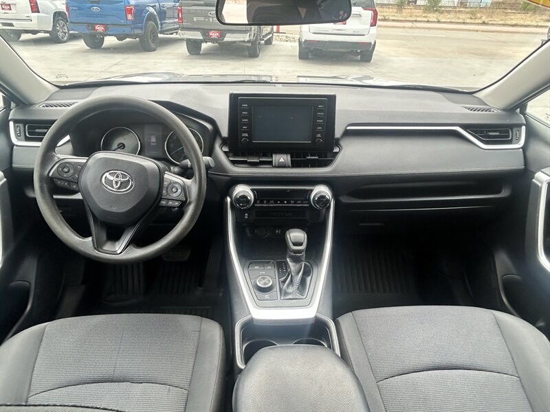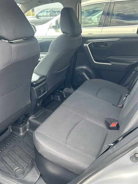 2019 Toyota RAV4 Hybrid LE — powered by a 2.5L Hybrid I4 with a combined 219 hp, paired to an electronically controlled CVT and Toyota’s AWD-i all-wheel-drive system. Factory standard safety and driver-assist equipment includes Toyota Safety Sense P (Pre-Collision System with Pedestrian Detection, Lane Departure Alert with Steering Assist, Dynamic Radar Cruise Control and Automatic High Beams) and a backup camera. Comfort and convenience features include cloth seating with 60/40 split-folding rear seats, remote keyless entry, power windows and locks, Bluetooth hands-free audio, USB connectivity and a touchscreen infotainment interface.