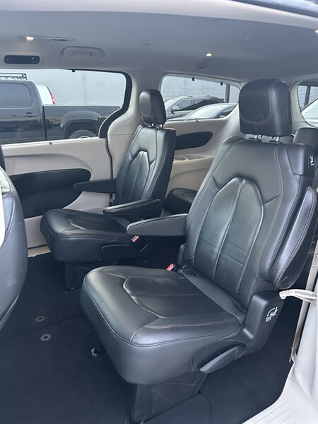 2020 Chrysler Pacifica Touring L powered by the Pentastar 3.6L V6 (287 hp, 262 lb-ft) and paired with a nine-speed automatic transmission and front-wheel drive. Factory-standard comfort and convenience features include seating for seven with Chrysler’s Stow ’n Go fold-flat second- and third-row seating, leather-trimmed front seats with power adjustments and heated front seats, remote start, keyless Enter ’n Go, power sliding side doors and power liftgate, and tri-zone automatic climate control. Infotainment is provided by Uconnect with an 8.4-inch touchscreen, Apple CarPlay/Android Auto compatibility, Bluetooth and available navigation. Standard safety and chassis equipment comprises a rearview camera, multiple airbags, anti-lock brakes, electronic stability and traction control, and tire pressure monitoring, with additional driver-assist technologies offered as factory options.
